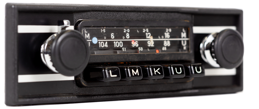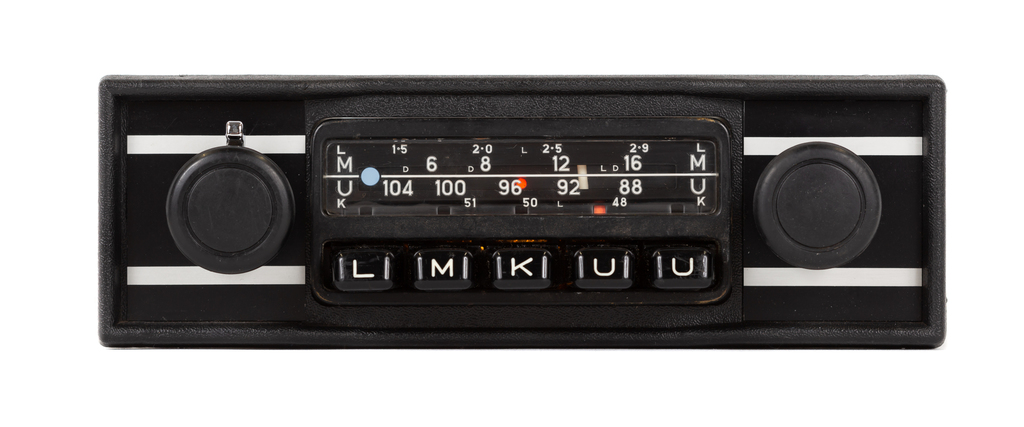 70er Jahre, Mono Radio in Monoblock Bauweise, manuelle Senderabstimmung mit 2xUKW/1xKW/1xMW/1xLW Stationstasten, AUX-MP-3 anschlußtauglich, 12V +/- umschaltbar, ein Klassiker für Porsche, VW Käfer/Bully oder Britische Fahrzeuge mit Plus-Masse Elektrik, Restauriert, kaum Gebrauchsspuren